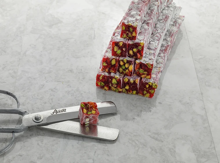 Turkish Delight with Pomegranate Aroma and Pistachio Covered Icing Sugar