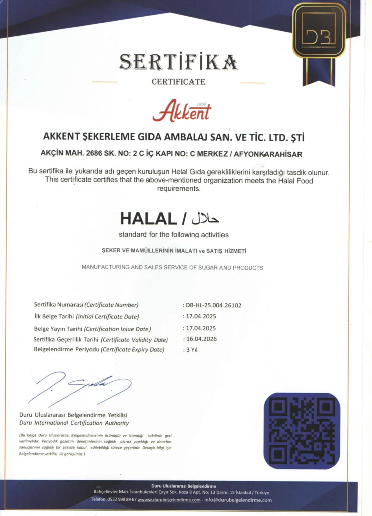 Şeffaflık ilkemiz gereği tüm belgelerimize aşağıdan ulaşabilir, Akkent Lokum’un kaliteye verdiği değeri birinci elden görebilirsiniz.